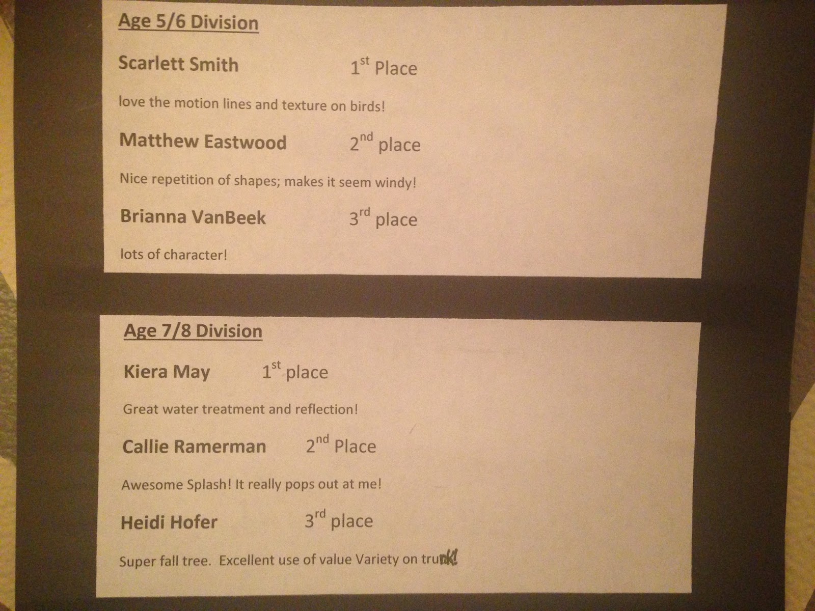 Congrats to all my students on a great art show.